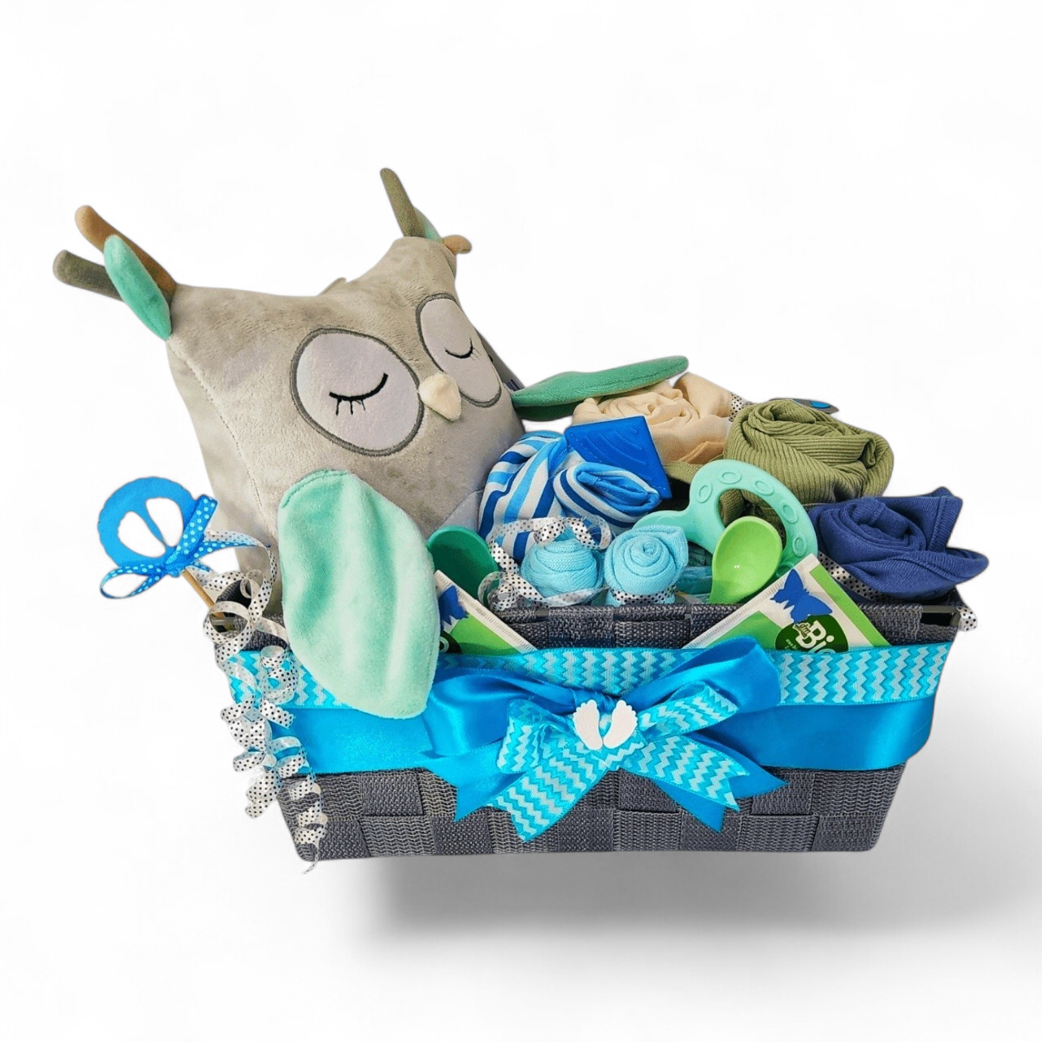 Darčekový kôš je plný novorodeneckého oblečenia a potrieb pre bábätko. Je nielen krásnou pozornosťou, ale aj praktickou pomocou pre mamičku v prvých dňoch s bábätkom. Hrkajúcu plyšovú sovu si vaše bábätko zamiluje!