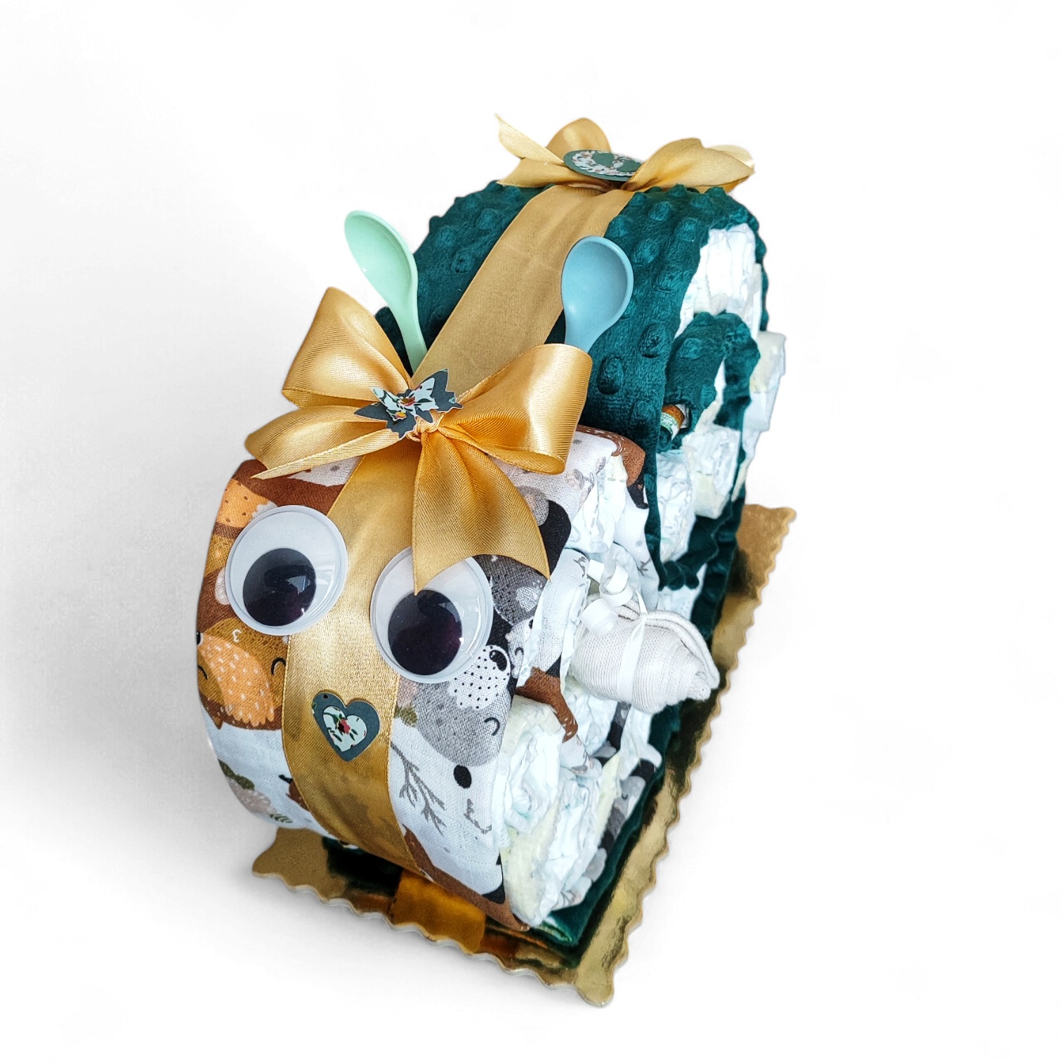 Jednotlivé komponenty sa môžu líšiť vzhľadom na dostupnosti u dodávateľa. Dizajn plienkovej torty je však vždy dodržaný.