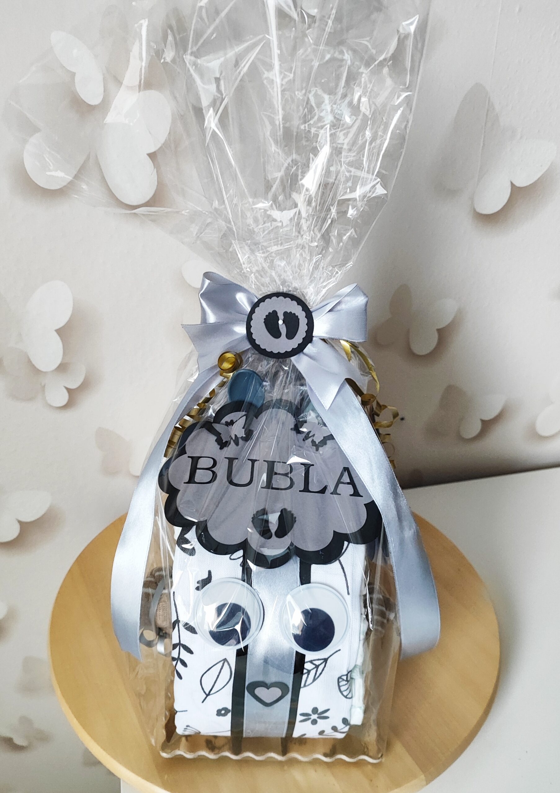 - MAŠLE, STUHY, DEKORÁCIE, servírovaný na tortovom podnose a darčekovo zabalený v celofáne s mašľami