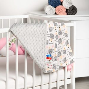 - DEKA na prikrytie bábätka – vyrobené z najkvalitnejšej minky látky a 100% bavlny o rozmere 75×100 cm. Na deke sú tiež farebné stuhy, ktoré zaujmú každé batoľa.