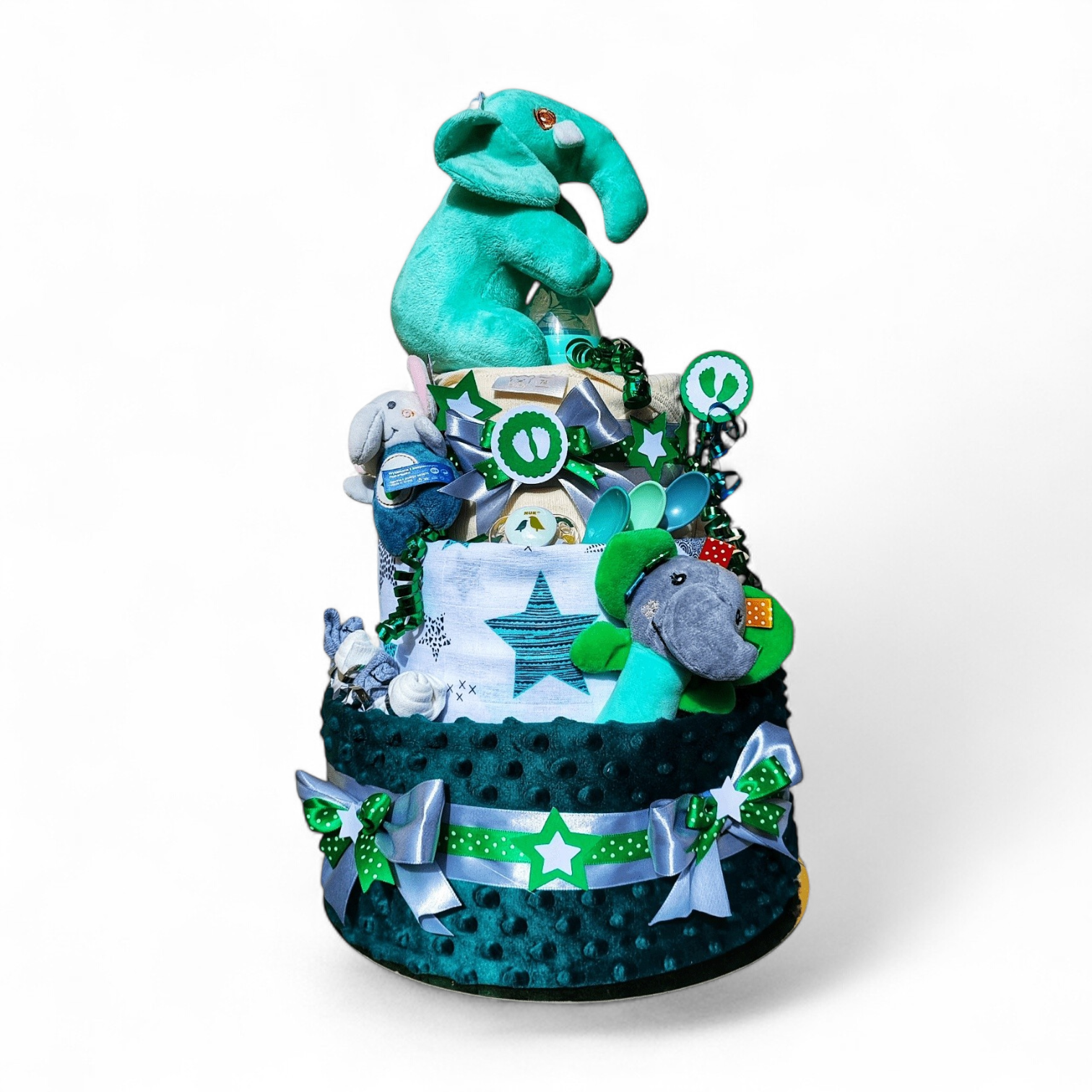 Jednotlivé komponenty sa môžu líšiť vzhľadom na dostupnosti u dodávateľa. Dizajn plienkovej torty je však vždy dodržaný.