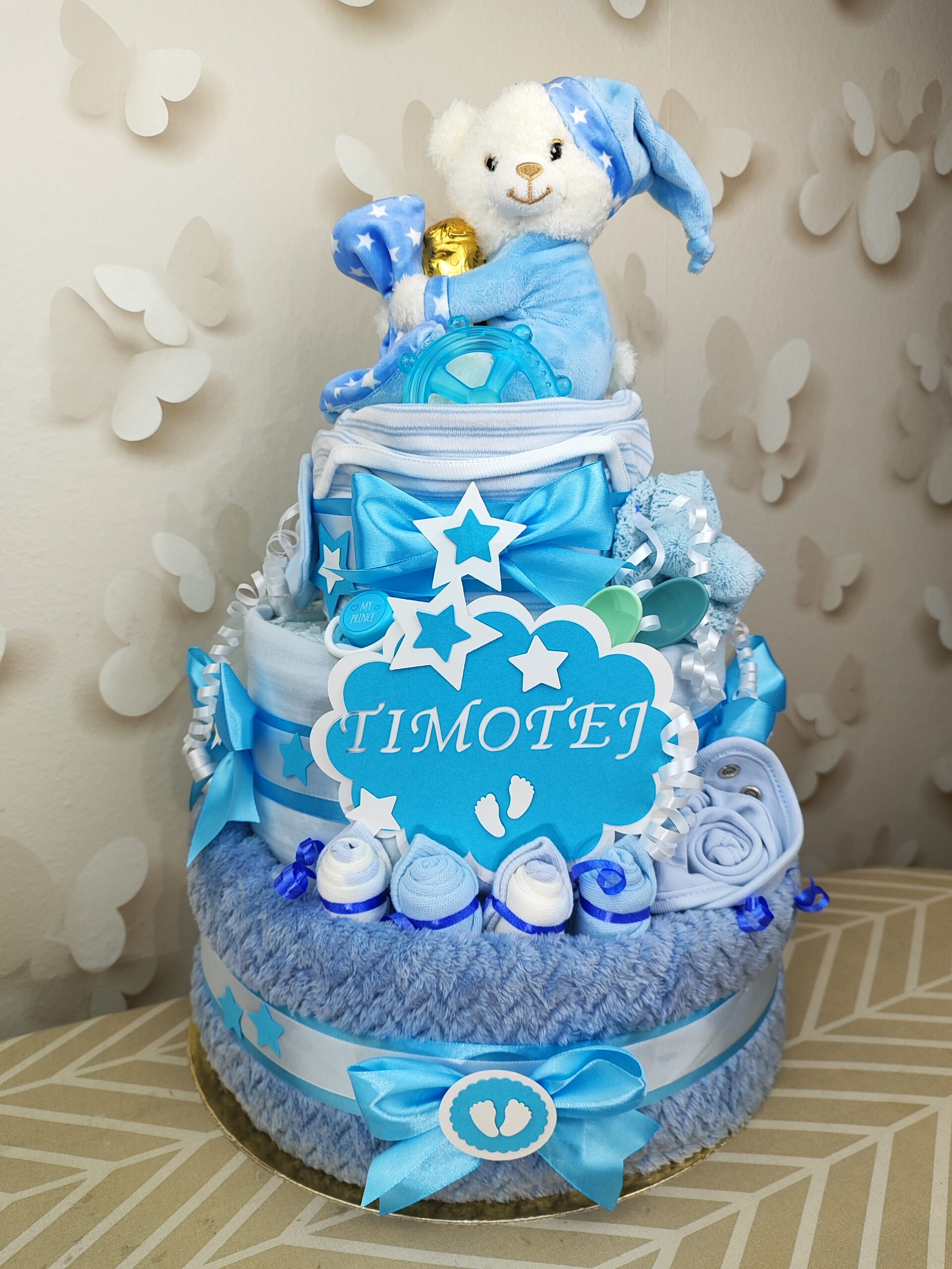 - ZDARMA VENOVACIA KARTA – možnosť vlastného textuJednotlivé komponenty sa môžu líšiť vzhľadom na dostupnosti u dodávateľa. Dizajn plienkovej torty je však vždy dodržaný.