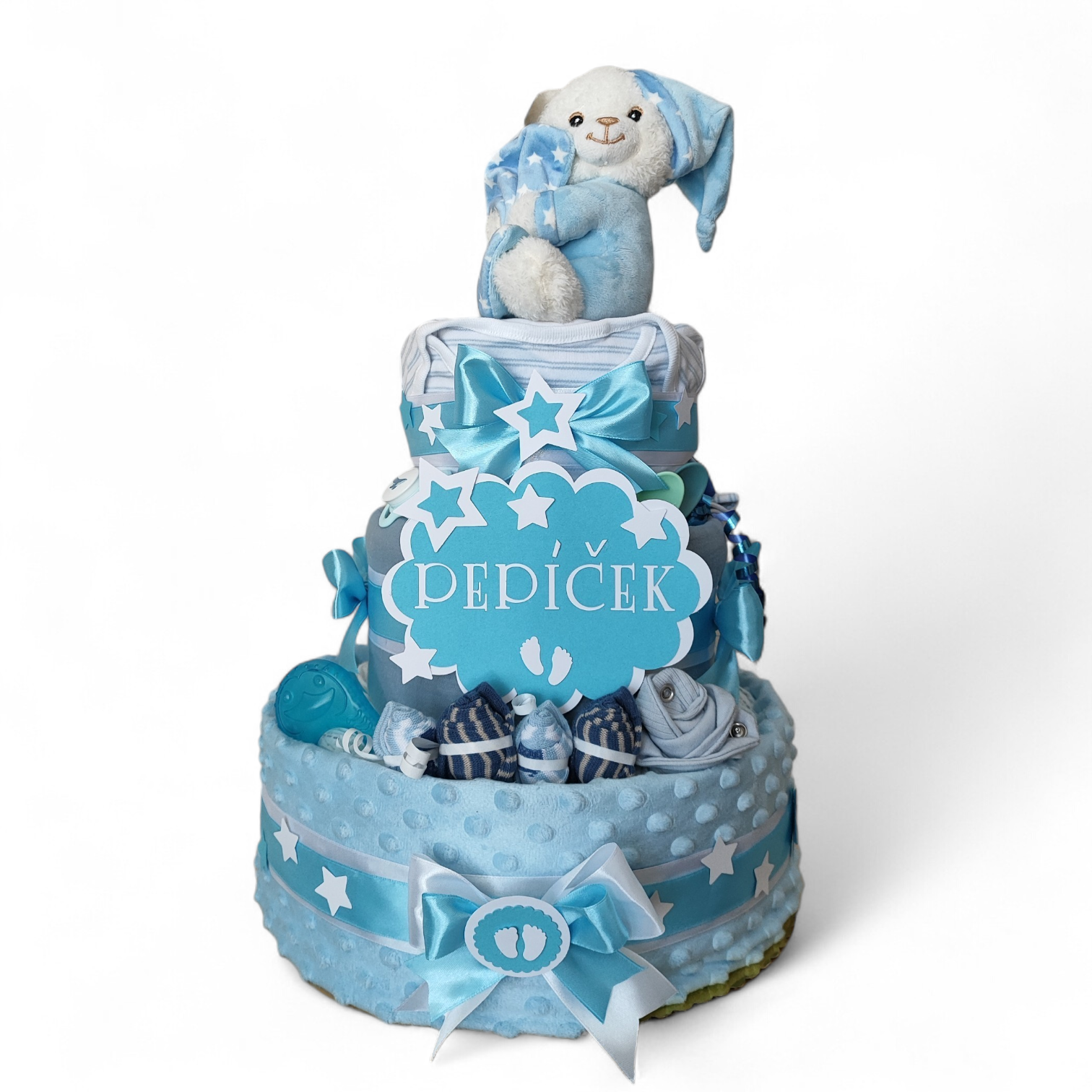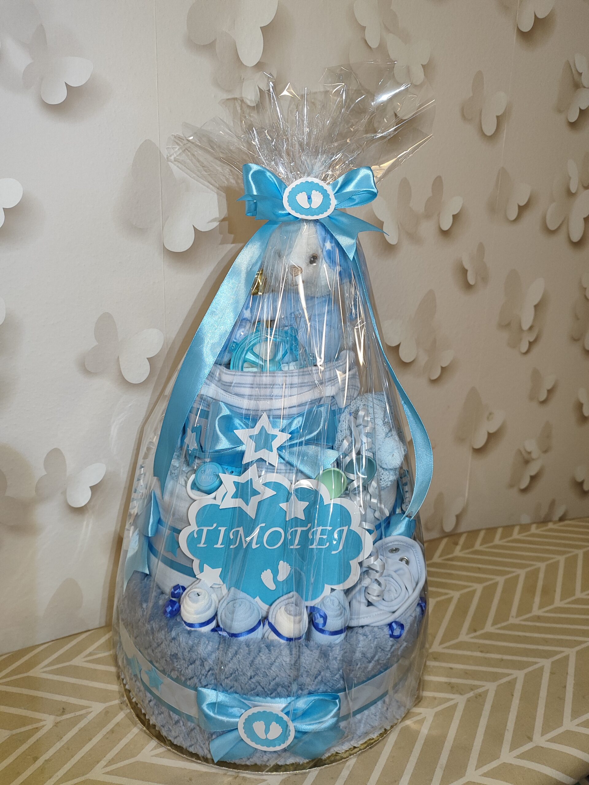 Plienková torta je servírovaná na tortovom podnose, ozdobená mašľami, stuhami a dekoráciami a darčekovo zabalená do celofánu. Vďaka tomu je pripravený rovno na odovzdanie ako krásny darček pre mamičku aj bábätko. Súčasťou balenia je aj venovacia kartička s možnosťou vlastného textu. Do poznámky v objednávke stačí napísať text, ktorý chcete na kartičku uviesť.