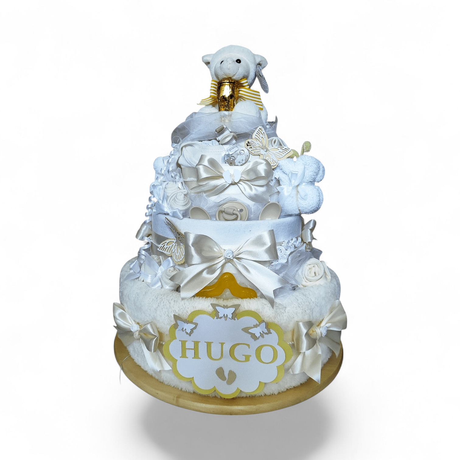 Jednotlivé komponenty sa môžu líšiť vzhľadom na dostupnosti u dodávateľa. Dizajn plienkovej torty je však vždy dodržaný.